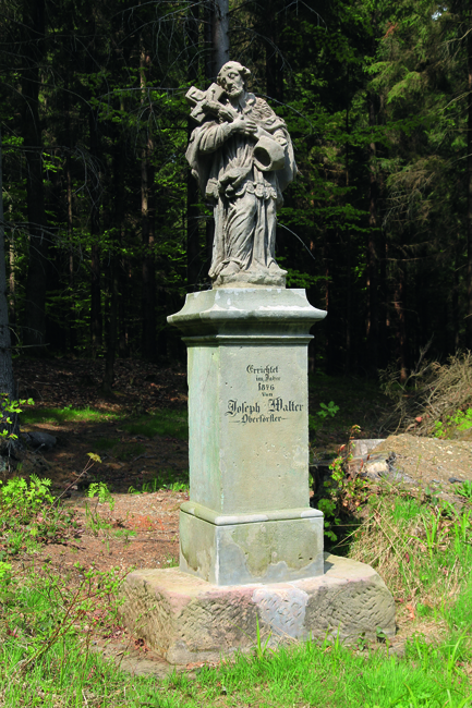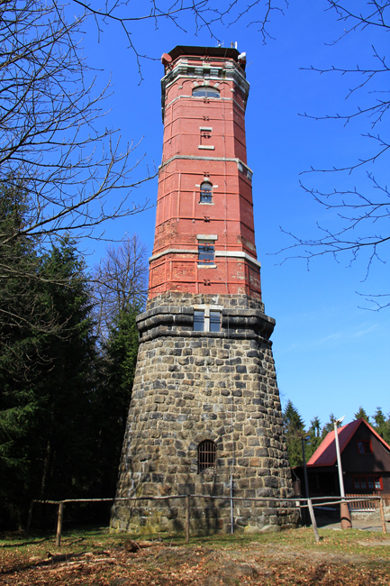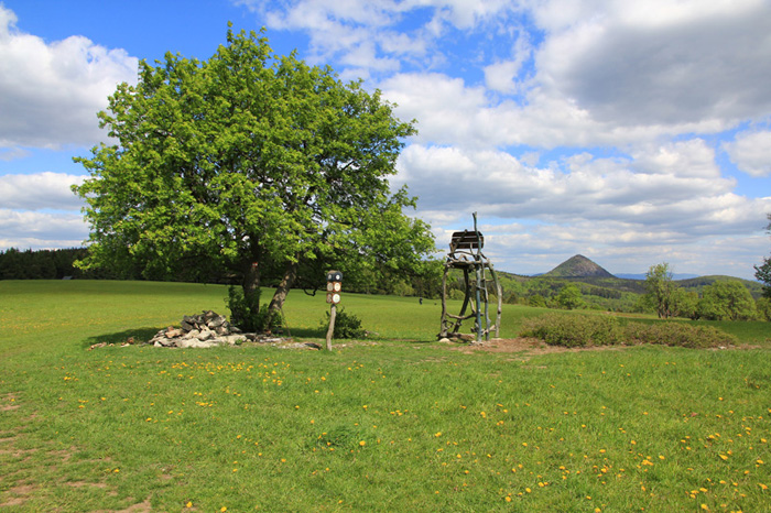 Wanderung 3, Hrazený (Pisken): Ab dem Grünen Kreuz wurde die rote Markierung vom bisherigen Kunnersdorfer Kirchsteig eingezogen. Außerdem ist der im Anschluss bisher begangene Weg neben den Silberwiesen durch abgesperrtes Weideland behindert und wächst zu. Deshalb gehen wir vom Grünen Kreuz nun mit der roten und grünen Markierung auf dem Fürstenwalder Kirchsteig zum südlichen Bergfuß des Pirsken. Dort wechseln wir nach rechts zur gelben Markierung, die bis zur Pirskenbaude führt. Von der Baude wurde die einstige rote Sondermarkierung zur Aussicht Volský kámen (Ochsenstein) auf eine rote Strichmarkierung umgestellt. Außerdem wurden die bisherigen roten Dreiecke vom Ochsenstein zum Pirskengipfel gelöscht. Bitte deshalb jetzt folgende Beschreibung zum Gipfel nutzen: „Für die Erkundung der höchsten Punkte des Pirskens gehen wir von der Aussicht am Ochsenstein auf dem rot markierten Pfad nur etwa 30 m zurück. An der Gabelung nehmen wir den unscheinbaren Pfad halblinks. Im folgenden Wegabschnitt wird der Pfad deutlicher und verläuft sanft ansteigend zwischen den silbrigen Stämmen hoher Buchen über den Bergrücken. Eine umgestürzte Fichte zwingt den Pfad zu einem Links- und gleich darauf zu einem Rechtsbogen und führt nach etwa 50 m direkt zu einer interessanten Basaltklippe unter hohen Buchen am Rande des Gipfelplateaus.“