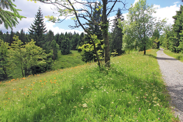 In der Wanderung 2 ist ein Pfad entlang des Grünen Grabens auf 500 m nicht mehr begehbar. Man ließ den einstigen Naturlehrpfad verwildern, er ist nun komplett zugewachsen. Bitte deshalb dem breiten Weg geradeaus bis zu einer Häusergruppe folgen, dort links abbiegen und dem Weg folgen, bis man später auf den Grünen Graben trifft. Dieser Weg ist in der Karte der Wanderung 2 im Wander- und Naturführer Westerzgebirge eingezeichnet.