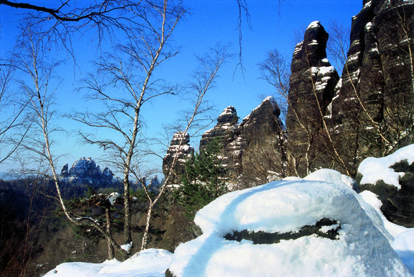 Blick auf die Lehnsteigtürme im Schmilkaer Gebiet |