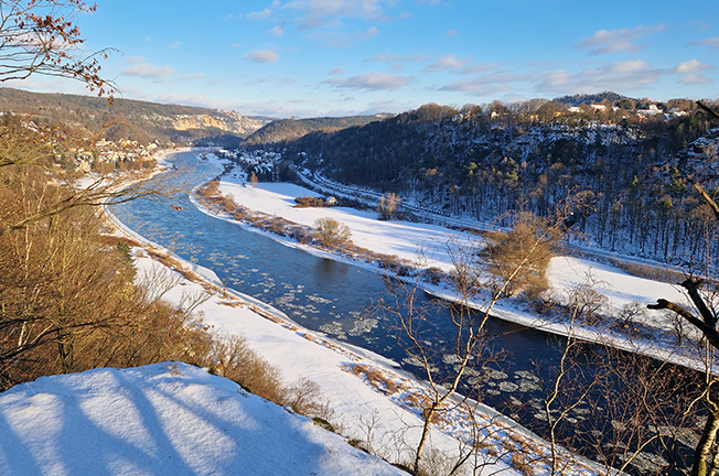 Blick vom Steinbruchpfad Wehlen auf die Elbe |